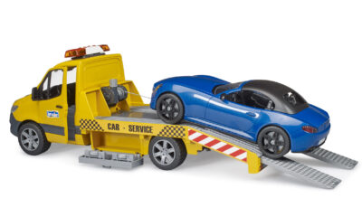 Bruder 02675 je odtahový vůz Mercedes-Benz Sprinter s výstražným majákem a sportovním roadsterem. Skvělý herní set pro děti, které si rády hrají na záchranu nepojízdných vozidel ve městě i na dálnici.