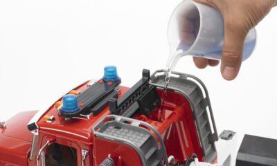 Kabina MACK Granite je detailně propracovaná – má otevírací dveře, sklopná zpětná zrcátka a vyklápěcí kabinu motoru. Hlavním lákadlem je funkční stříkačka, do které lze nalít vodu a pomocí pumpy hasit „požár“. Nechybí hadice, otočný žebřík, podpěrné nohy ani světelný a zvukový modul (maják + houkačka).