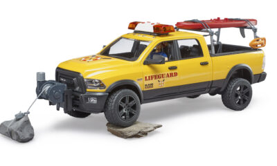 Bruder 02506 – RAM 2500 jako vozidlo pobřežní hlídky s figurkou plavčíka je akční herní sada, která přináší vzrušující příběhy z pláže a mořského pobřeží přímo do dětského světa. Robustní americký pickup RAM 2500 v typickém barevném provedení záchranné služby je vybaven světelným a zvukovým modulem, díky kterému se malí záchranáři rychle dostanou na místo zásahu.