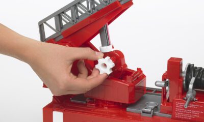 Integrovaná nádržka na vodu umožňuje s Bruder hasiči ten nejopravdovější možný zážitek z výjezdu. Vodní hadici lze svinout a na konci má plně funkční vodní sprchu. Žebřík se záchranným košem lze vysunout a výškově nastavit. Stabilitu zajišťují čtyři podpěry.