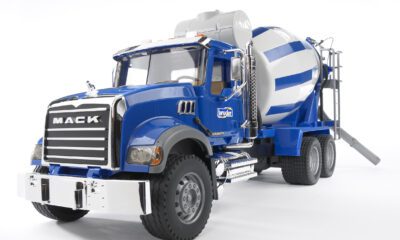 Hlavní dominantou je otáčivý buben míchačky, který se ovládá klikou a skutečně „míchá“ materiál uvnitř. Díky dvěma šoupátkům lze obsah vyprázdnit jako u skutečného domíchávače. Kabina MACK Granite má otevírací dveře, sklopná zpětná zrcátka a je kompatibilní se všemi auty a figurkami ze světa Bruder. Nechybí ani detailní maska chladiče s logem MACK a chromové prvky.