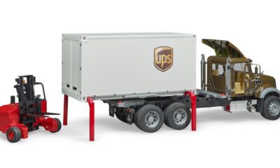 S Bruder 02828 nákladním autem UPS Mack Granite si můžete vytvořit vlastní logistické centrum a prožít vzrušující dobrodružství. Díky realistickému vzhledu a funkčnímu vysokozdvižnému vozíku se vaše děti budou cítit jako skuteční řidiči kamionů.