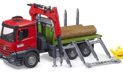 Bruder 03669 – Přepravník dřeva MB Arocs je realisticky zpracovaný model nákladního vozu, určený pro převoz klád a dřevěných kmenů. Tento výkonný stroj v měřítku 1:16 je vybaven otočným a teleskopickým jeřábem s funkčním drapákem, který umožňuje snadné nakládání i vykládání dřeva.