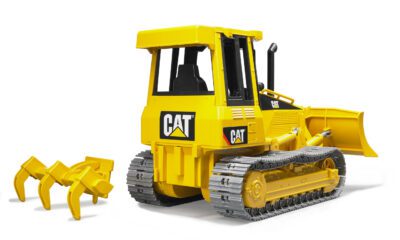 Model disponuje pohyblivou radlicí, kterou lze zvedat i naklápět, realistickým pásovým podvozkem, a je vyroben z odolného plastu s důrazem na detail. Malý buldozer CAT je kompatibilní s figurkami Bruder, což ještě víc rozšiřuje možnosti herních scénářů.