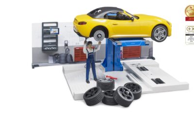 Tato autodílna je místem, kam se můžete vydat s vozidly BRUDER, která potřebují kontrolu. Mechanik si může vozidla prohlédnout na kompletně výškově nastavitelné plošině a vyzkoušet brzdy na připojeném testovacím zařízení.