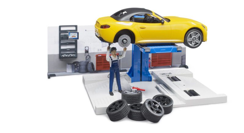 bworld Autodílna s mechanikem a roadsterem – Bruder 62110