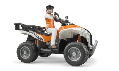 Vydejte se za dobrodružstvím s čtyřkolkou Bruder 63000! Tato skvěle propracovaná čtyřkolka v měřítku 1:16 s realisticky pohyblivou figurkou řidiče je ideální pro jízdu v terénu, na farmě nebo v záchranných složkách. Čtyřkolka je vybavena držákem na helmu, funkčním zavěšením kol a bohatými detaily, které jsou typické pro kvalitu Bruder.