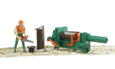 Objevte fascinující svět lesního hospodářství s realistickou sadou Bruder 62650 – Dřevařský set s figurkou. Tento detailně propracovaný set obsahuje pohyblivou figurku dřevorubce v ochranném oblečení, motorovou pilu, klády, stojan na řezání dřeva a další příslušenství. Skvělý doplněk ke všem lesnickým vozidlům Bruder v měřítku 1:16 – jako jsou harvestery, přívěsy na dřevo nebo traktory s navijákem.