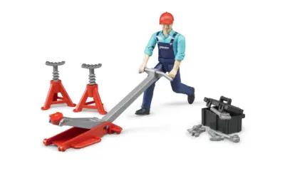 Každý stroj potřebuje čas od času menší či větší opravu. A kdo by se o to měl postarat, když ne zkušený mechanik? Figurka mechanika s nářadím Bruder 62100 je skvělým pomocníkem pro všechny malé stavitele a kutily.