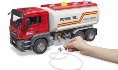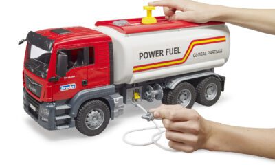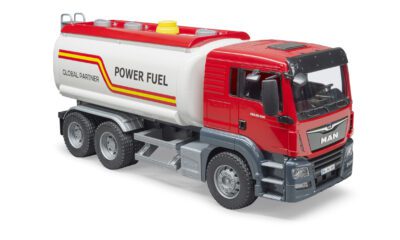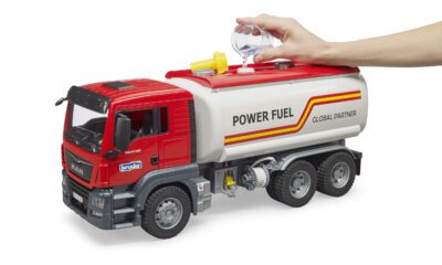 Model má otevírací kabinu řidiče, sklopná zpětná zrcátka, měkké profilované pneumatiky a hlavně funkční cisternový systém s pumpou. Pomocí hadice lze stříkat vodu jako opravdovým hasičským nebo kropicím vozem. Bruder i zde dbá na maximální odolnost, detail a kompatibilitu s figurkami a příslušenstvím ze série bworld.