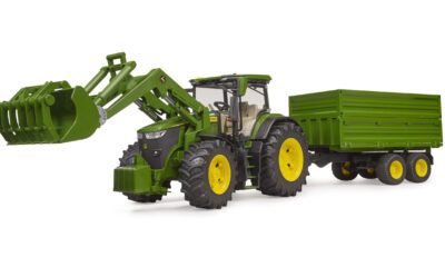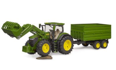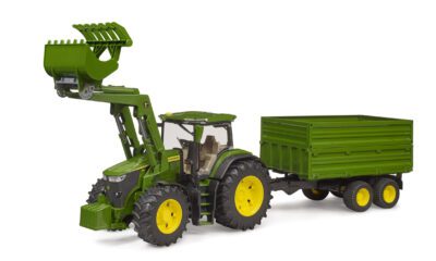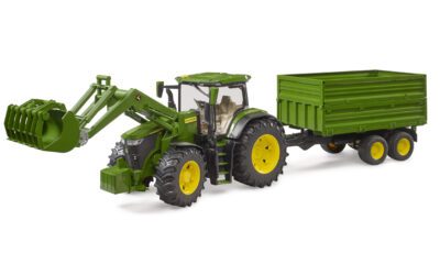 Bruder 03155 přináší silný traktor John Deere 7R 350 s funkčním čelním nakladačem a velkým sklápěcím přívěsem. V měřítku 1:16 nabízí dětem realistickou hru inspirovanou skutečnými zemědělskými pracemi.