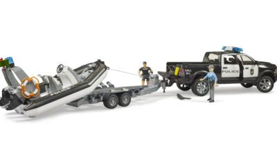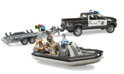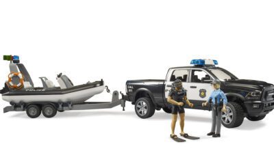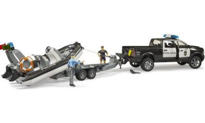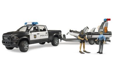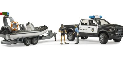Bruder 2507 – Bruder RAM policejní pick-up s člunem: Váš parťák pro dobrodružství v terénu i na vodě