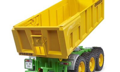 Přívěs má funkční sklápěcí mechanismus, otevírací zadní stěnu a masivní terénní kola pro bezproblémový pohyb i v náročném terénu. Díky odolné konstrukci z kvalitního plastu zvládne i venkovní hru.