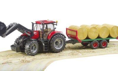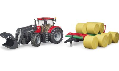 Traktor Case s nakladačem a přepravníkem balíků – Bruder 03198