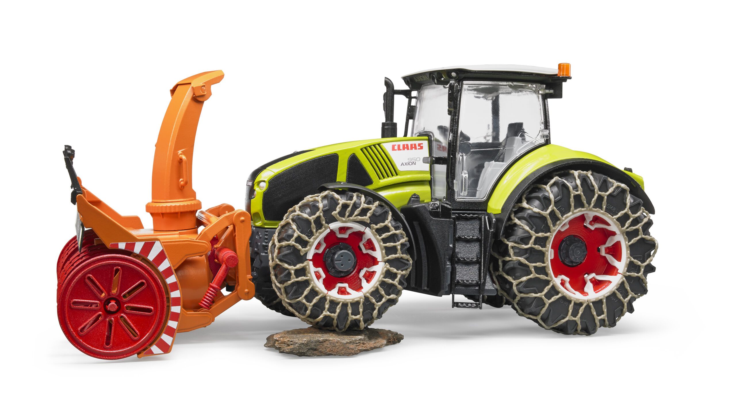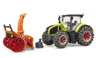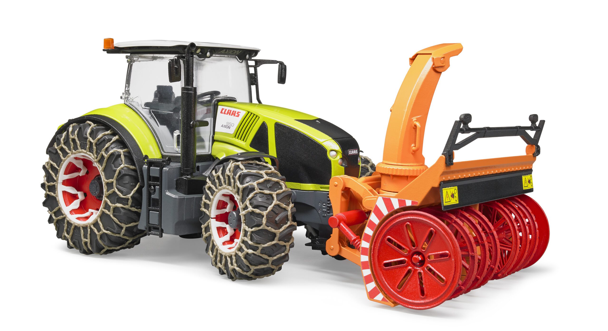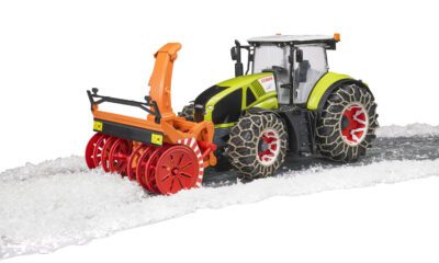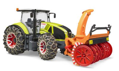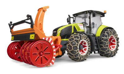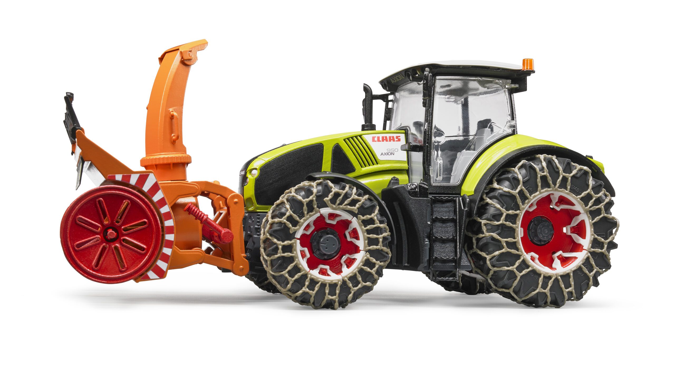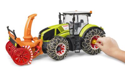 Traktor Bruder CLAAS AXION 950 je vybaven kompletní výbavou pro odklízení sněhu. Díky této výbavě si děti mohou vyzkoušet, jak se odklízejí silnice a chodníky.