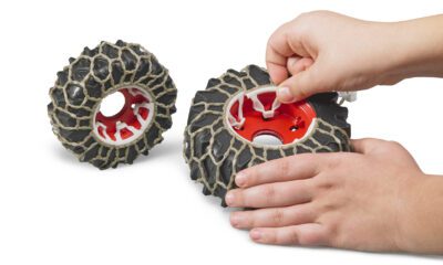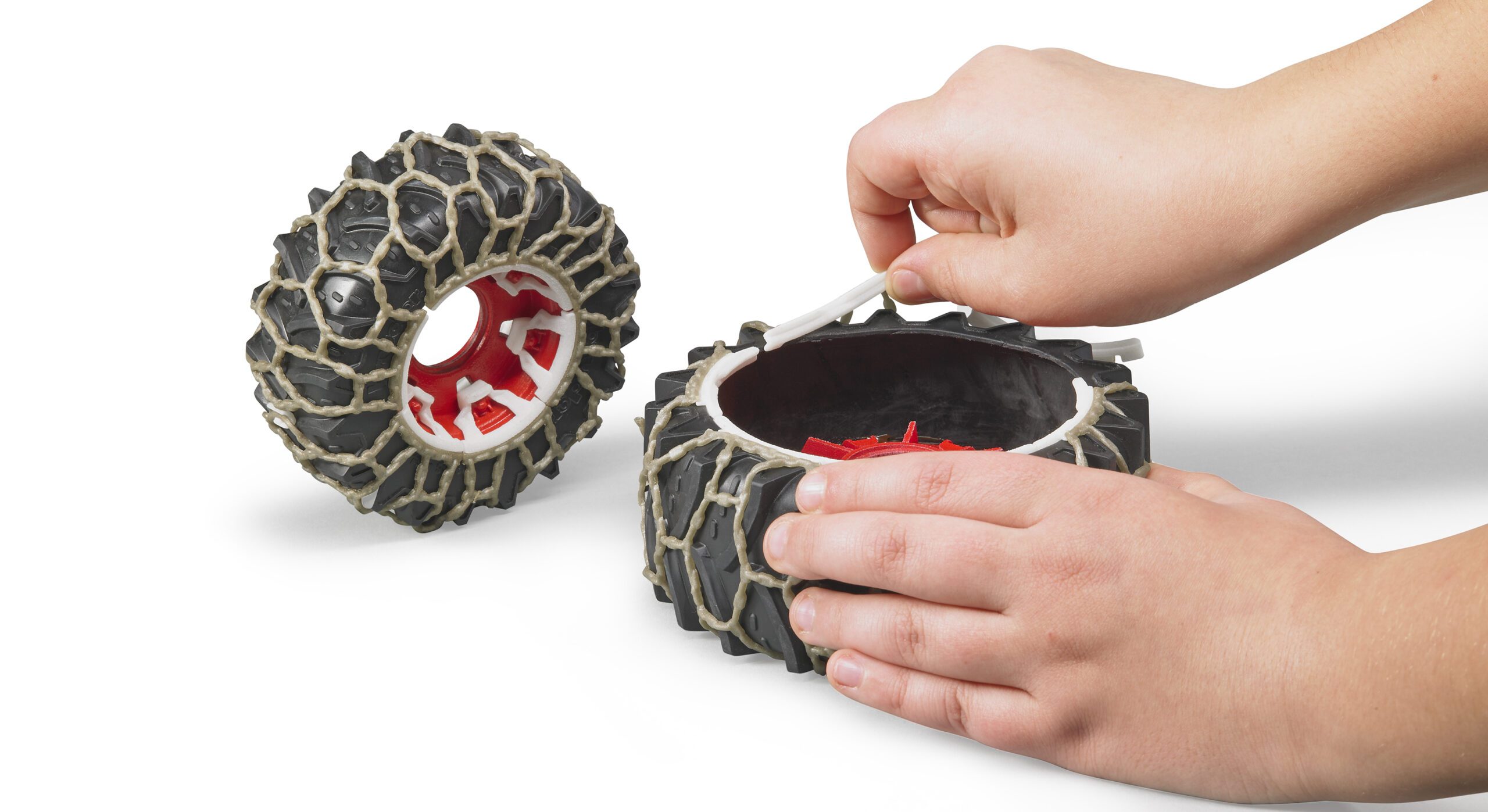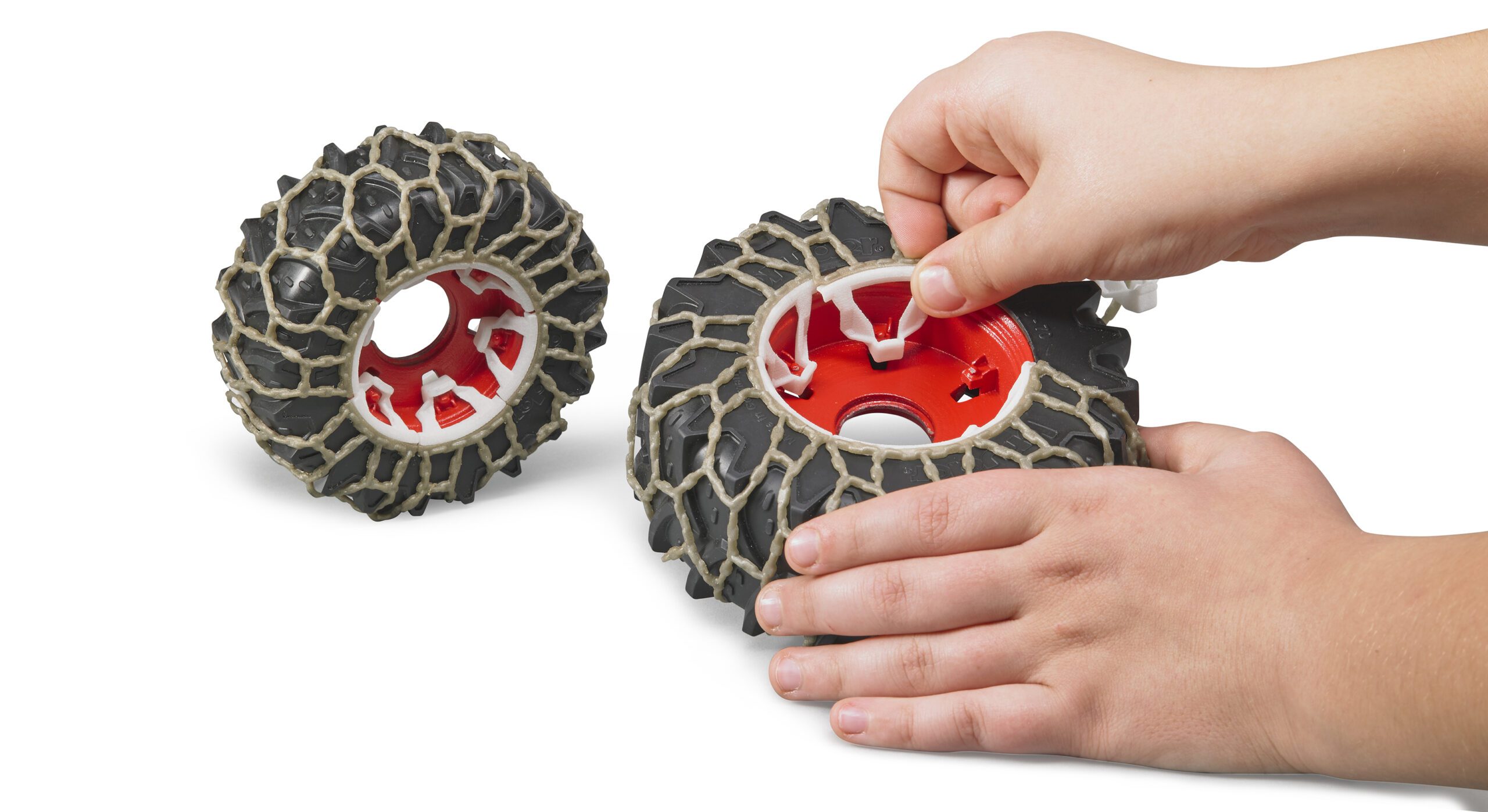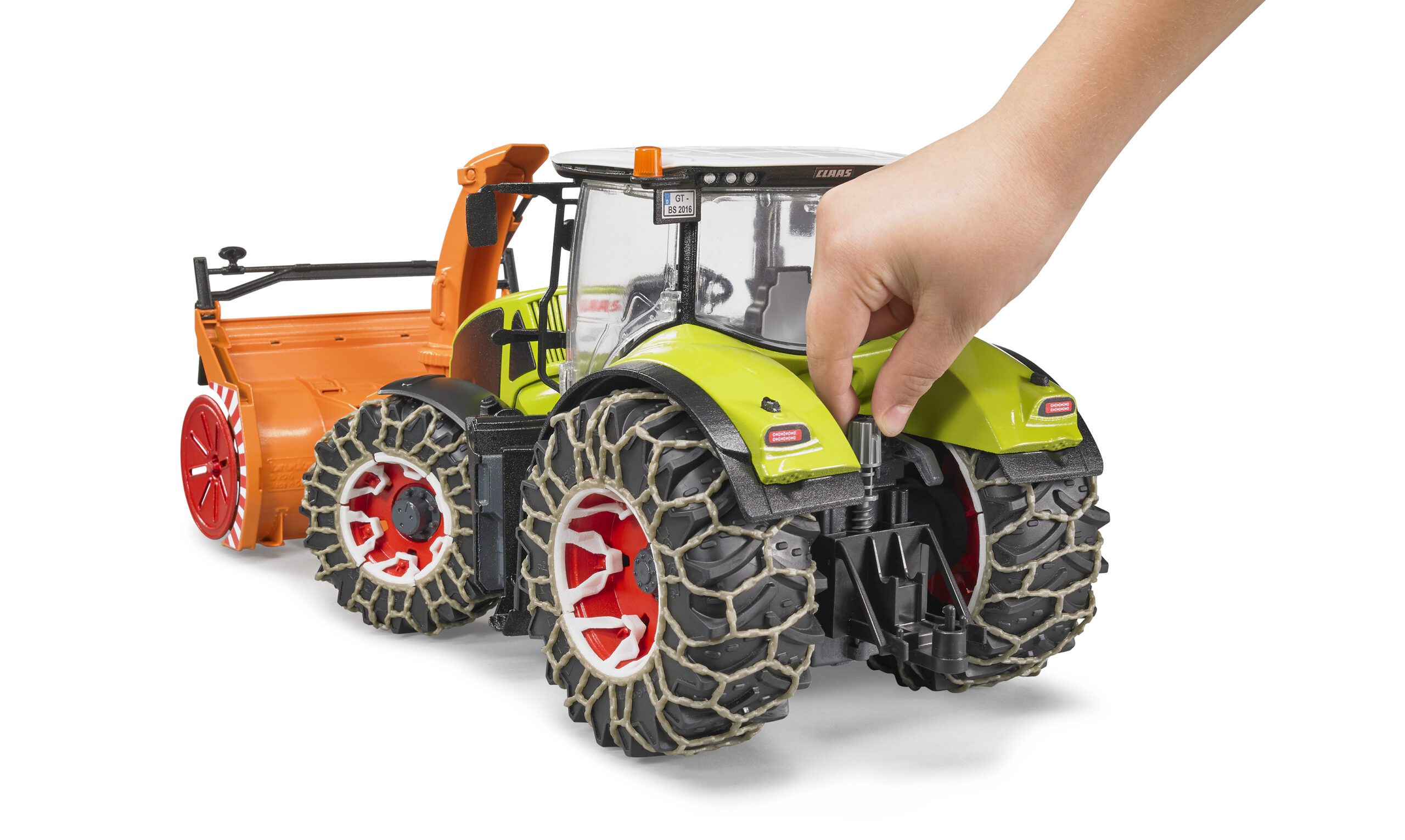 S traktorem CLASS AXION Bruder 03017 si díky realistické radlici a sněhovým řetězům budou děti připadat jako skuteční silničáři.