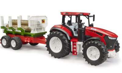 Tento model z řady Bruder Roadmax je navržen speciálně pro nejmenší děti od 2 let. Traktor má zaoblené hrany, měkké plastové díly a masivní kola, která zvládnou jakýkoli terén. Valník s nákladem dřeva je odpojitelný, zadní čelo výklopné – ideální pro nácvik nakládky a vykládky.