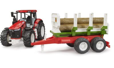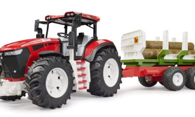 Bruder 03453 Traktor Roadmax s valníkem je ideální první traktor pro malé farmáře! Díky jednoduchému ovládání, robustní konstrukci a přívěsu s „kládami“ přináší skvělý zážitek z hraní doma i na pískovišti.