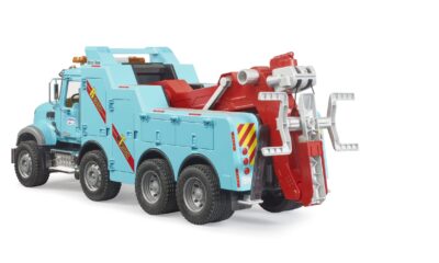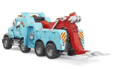 Tento odtahový a vyprošťovací vůz Bruder MACK kombinuje robustní konstrukci, dokonalé detaily a funkce inspirované skutečnými odtahovkami. Díky novému tažnému rámu (2025) lze snadno uchytit poškozené vozidlo za přední kola a odtáhnout ho do „dílny“. Teleskopické rameno s funkčním lanovým navijákem a výškovým nastavením umožňuje věrně napodobit práci skutečných profesionálů.