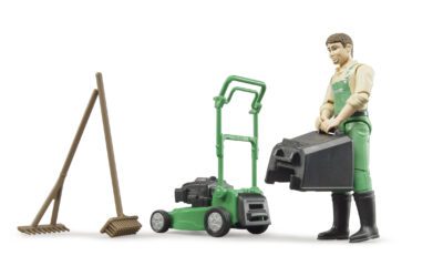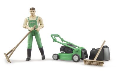 Proměň se ve šikovného zahradníka! S figurkou Bruder 62103 si děti užijí realistickou hru na údržbu zahrady nebo městské zeleně. Sada zahrnuje zahradníka s pohyblivými klouby, ruční sekačku, hrábě, lopatu a kolečko, takže práce na zahradě může začít hned.